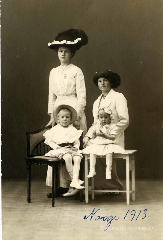 Harold Norlie, about 4 years, with his mother Dagni Norlie standing behind him. Harold's sister, Evelyn Norlie, about 2-1/2 years, seated with "Aunt IngabarPhotograph Details