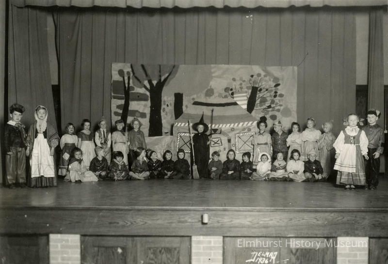 on back: 1936 First Grade Class at Hawthorne School Presenting the operetta "Hancel and Greta" Teacher- Ms Evelyn Mitchel