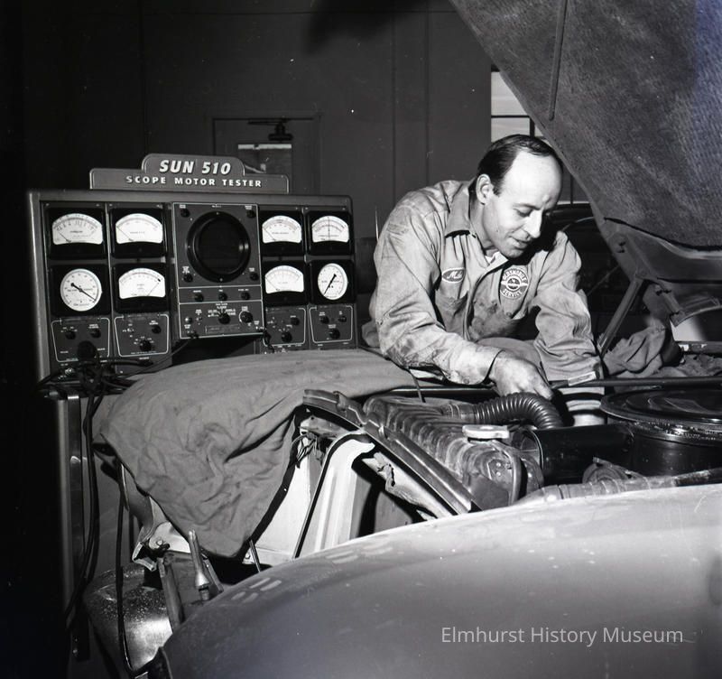 Mechanic in the Maintenance Garage of Hejhal Motors Oldsmobile at 135 Addison Avenue.Photograph Details