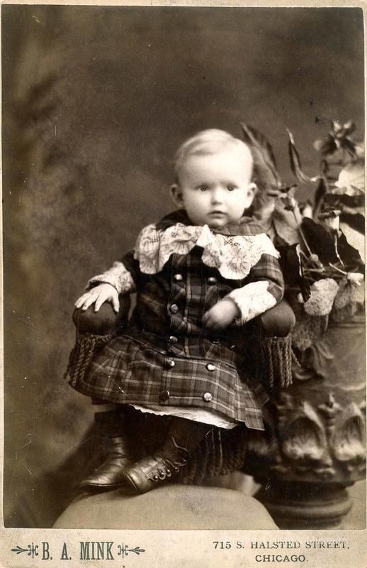 2-year-old Henry Scheffers.Image is mounted on cardstock. Printed underneath image is "B A MINK / 715 S. Halsted Street / CHICAGO." Reverse has elaborate engraving of photographer name and address in banner format and handwrittenInscription/Signature/Marks