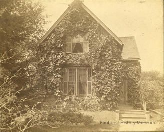 Front view of gardener's cottage at Clover Lawn, previously known as Hill Cottage. The cottage fronted York Street about 140 feet north of St. Charles Road.Photograph Details