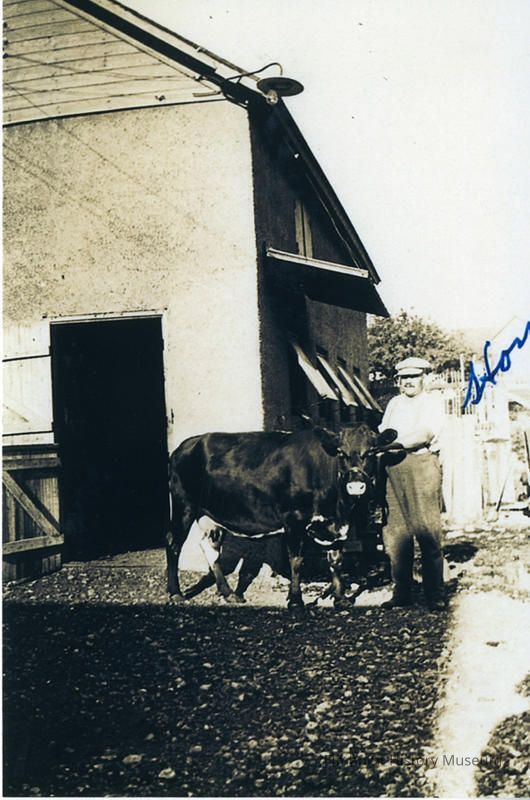 Homer Egolf with a cow at 147 S. York StreetPhotograph Details