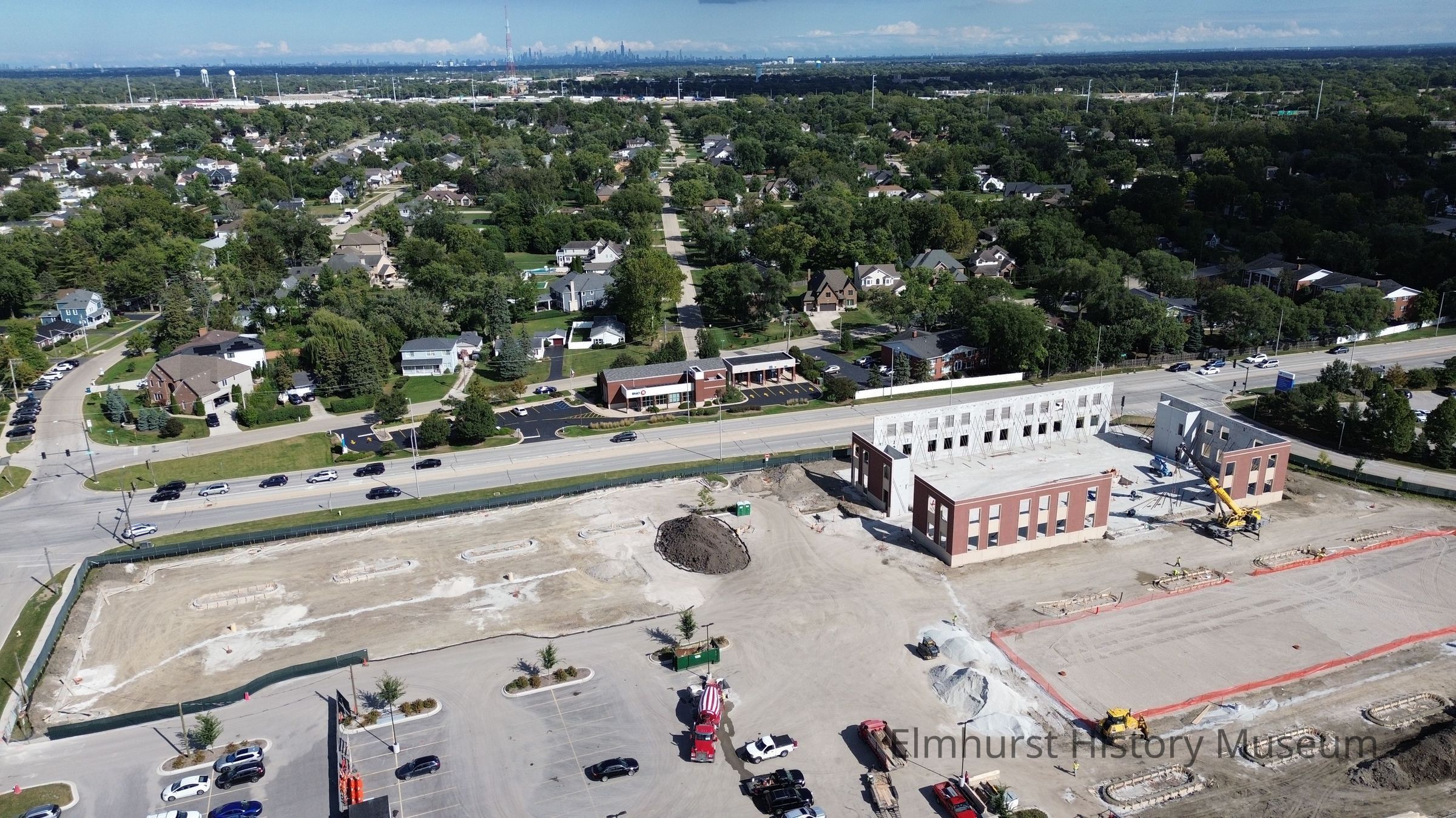 Aerial View of Elmhurst Memorial Hospital construction at Lexington and S. York Streets, looking east.Photograph Details