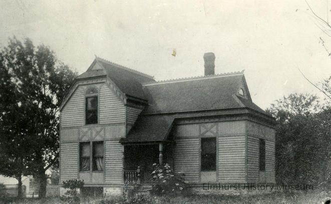 "Elmhurst/Historical/Commission" is stamped on the back. "Residence of Dr. Frederick Bates at Park and York St. Now part of Dr. Hill's residence on Cottage Hill Avenue" is hand-written on the back.