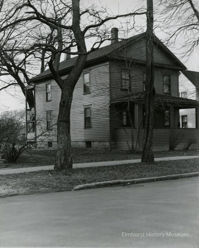 The second schoolhouse in Elmhurst, circa 1857 - 1888, was located on Church Street between York Street and Cottage Hill Avenue. Later the building was moved to 154 Schiller Street and served as a private home. This image was taken at the Schiller Street location.Photograph Details