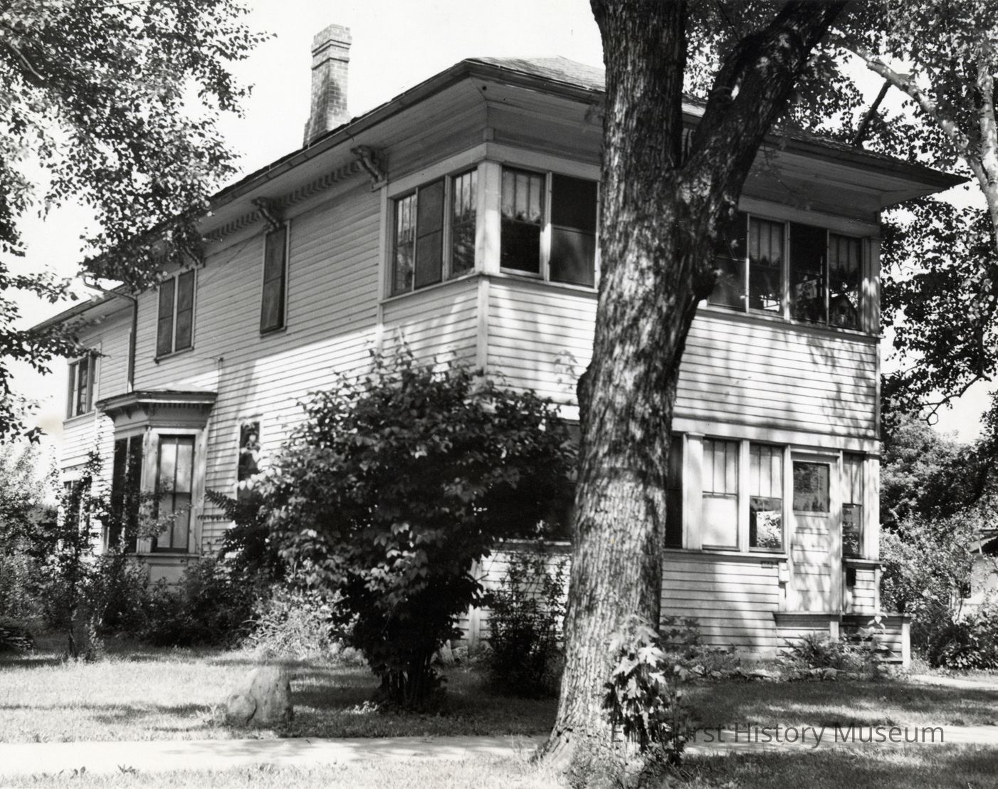Written on the back: House at 166 Maple. Frank Osten home-166 Maple. July 1941. Stamped Elmhurst Public Library/Elmhurst, ILL 60126. Photo by C.T. Schamdelineie (not sure of spelling)