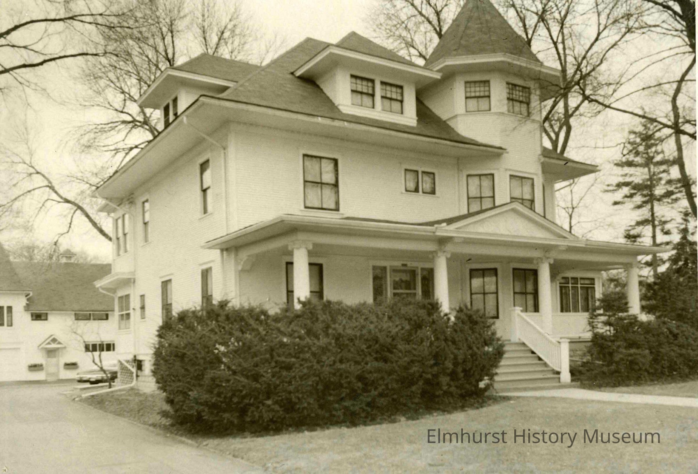 Stamping on the back reads "Robert M. Keith / Staff Photographer / Medinah Magazine." Handwriting on the back reads "One of 6 houses on Historic House Walk--May 18-19, 1973 / (benefit Ray Graham Assc for the Handicapped / Photo Spring-1973." The house was built in 1905.