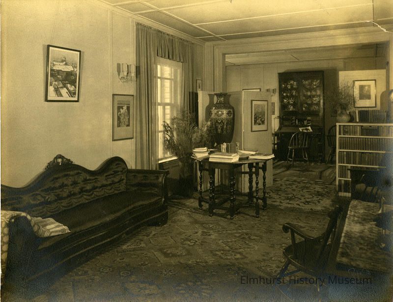 House at 232 S. York Street, interior view of sitting room - library.Photograph Details