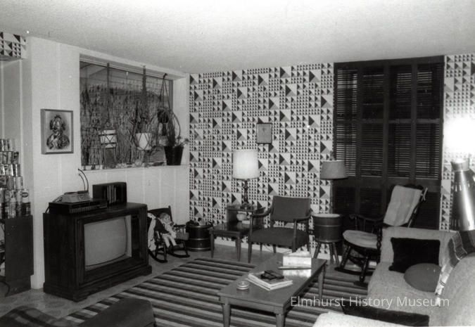 Family room of E. Norman Brydges-designed house at 255 W. St. Charles Road when it was on the market in 1989 and Doan Realty was the realtor for the property. Photos appeared in a sales brochure.Photograph Details