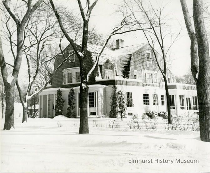 Stamped on back: Elmhurst Public Library / Elmhurst, ILL 60126 Written on back: Hanson Home / N.E. Corner Kenilworth & Adelia