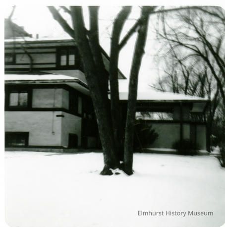 The house at 301 S. Kenilworth. This view shows the addition of the sleeping porch. The house was designed for the Frank B. Henderson Family by Frank Lloyd Wright and H. Webster Tomlinson. One of the later owners added a sleeping porch visible in this image. Later owners had that addition removed.Photograph Details