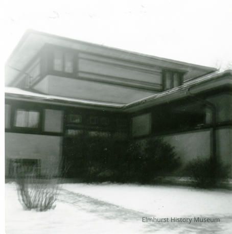 The house at 301 S. Kenilworth. This view shows the addition of the sleeping porch. The house was designed for the Frank B. Henderson Family by Frank Lloyd Wright and H. Webster Tomlinson. One of the later owners added a sleeping porch visible in this image. Later owners had that addition removed.Photograph Details