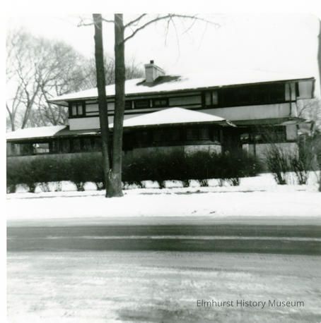 The house at 301 S. Kenilworth. This view shows the addition of the sleeping porch. The house was designed for the Frank B. Henderson Family by Frank Lloyd Wright and H. Webster Tomlinson. One of the later owners added a sleeping porch visible in this image. Later owners had that addition removed.Photograph Details