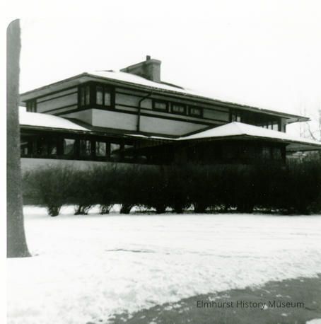 The house at 301 S. Kenilworth. This view shows the addition of the sleeping porch. The house was designed for the Frank B. Henderson Family by Frank Lloyd Wright and H. Webster Tomlinson. One of the later owners added a sleeping porch visible in this image. Later owners had that addition removed.Photograph Details