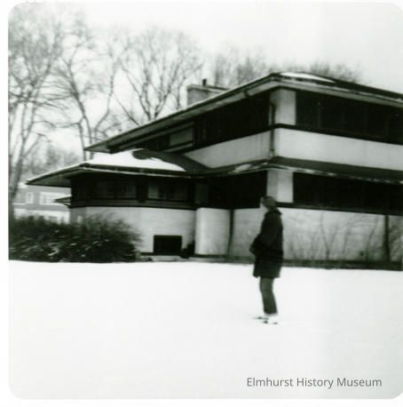 The house at 301 S. Kenilworth. This view shows the addition of the sleeping porch. The house was designed for the Frank B. Henderson Family by Frank Lloyd Wright and H. Webster Tomlinson. One of the later owners added a sleeping porch visible in this image. Later owners had that addition removed.Photograph Details