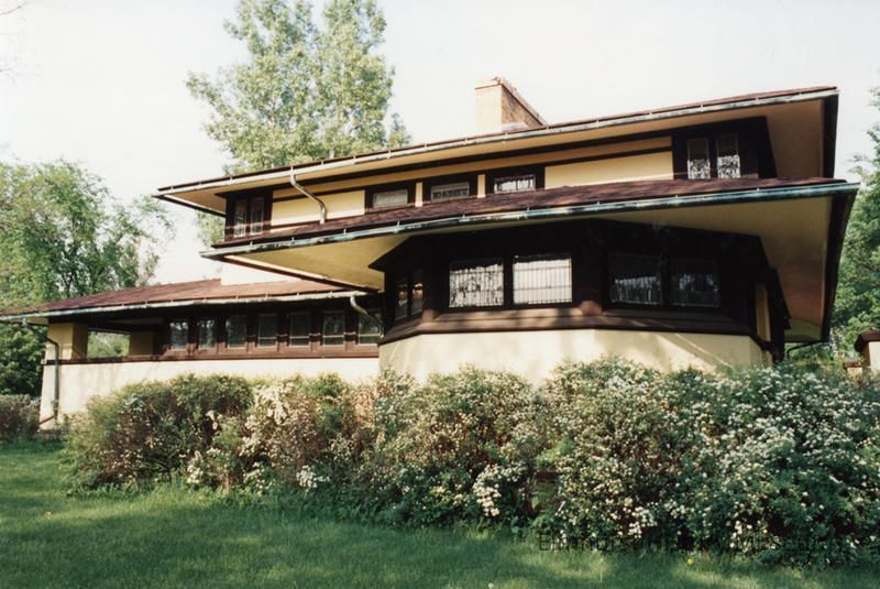 Exterior view of 301 S. Kenilworth, also known as the F.B. Henderson House, designed by Frank Lloyd Wright and H. Webster Tomlinson Design.Photograph Details
