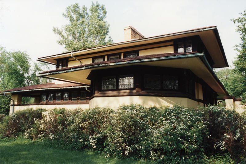 Exterior view of 301 S. Kenilworth, also known as the F.B. Henderson House, designed by Frank Lloyd Wright and H. Webster Tomlinson Design.Photograph Details