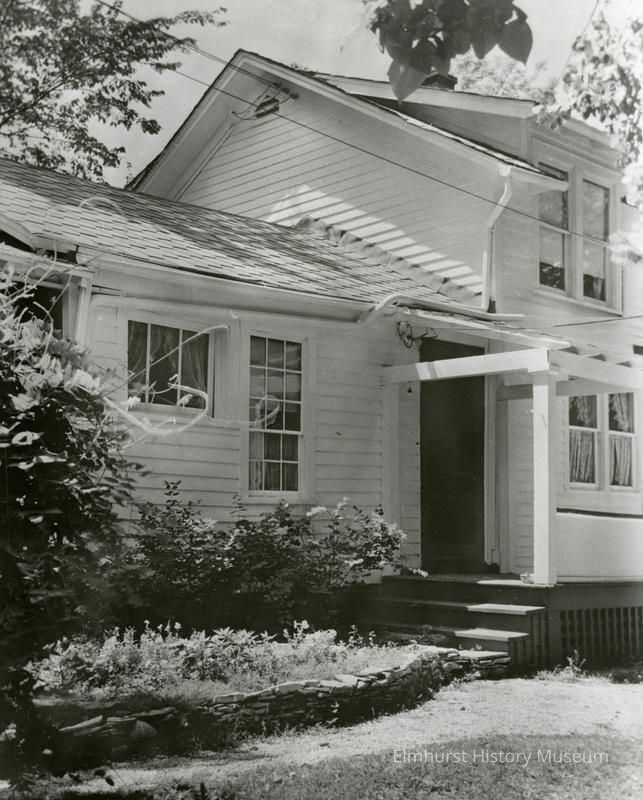 Partial view of the house at 331 S. York Street. One room of this house, seen on the left, was originally the first schoolhouse in Elmhurst circa 1850 - 1857 on St. Charles Road, west of Cottage Hill Avenue. After serving as the schoolhouse, the building was moved and was an addition to the house already standing at 331 S. York Street. The Carl Sandburg family lived in the house 1919 - 1928.Photograph Details