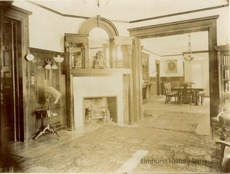 Interior view of the library in the Frank and Jannette "Lillie" Sturges home at 333 Cottage Hill Avenue, also known as Clover Lawn.Photograph Details