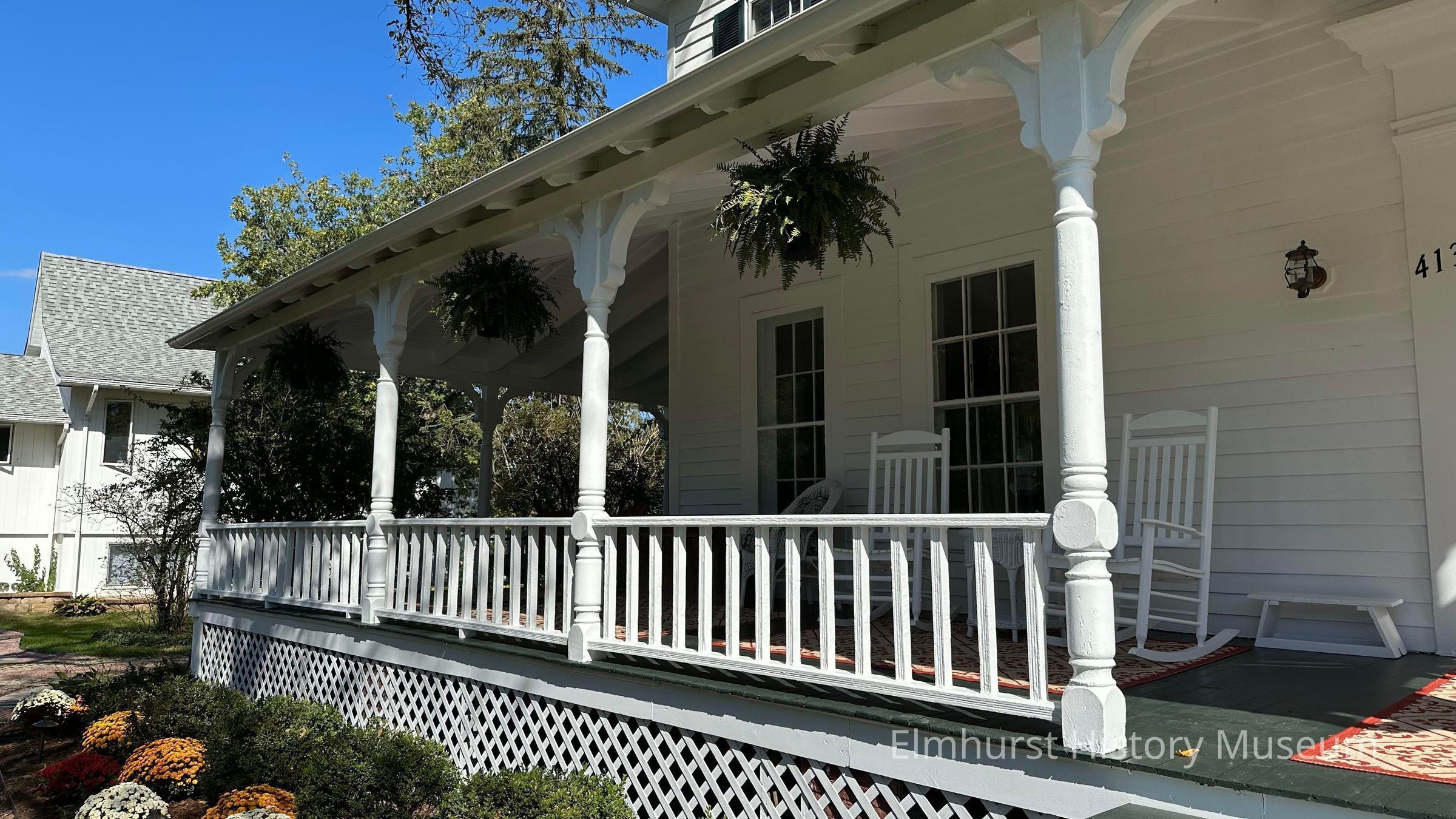 Exterior view of Hill Cottage house at 413 S. York Street. Hill Cottage is the oldest home and building in Elmhurst, dating to 1843.Photograph Details