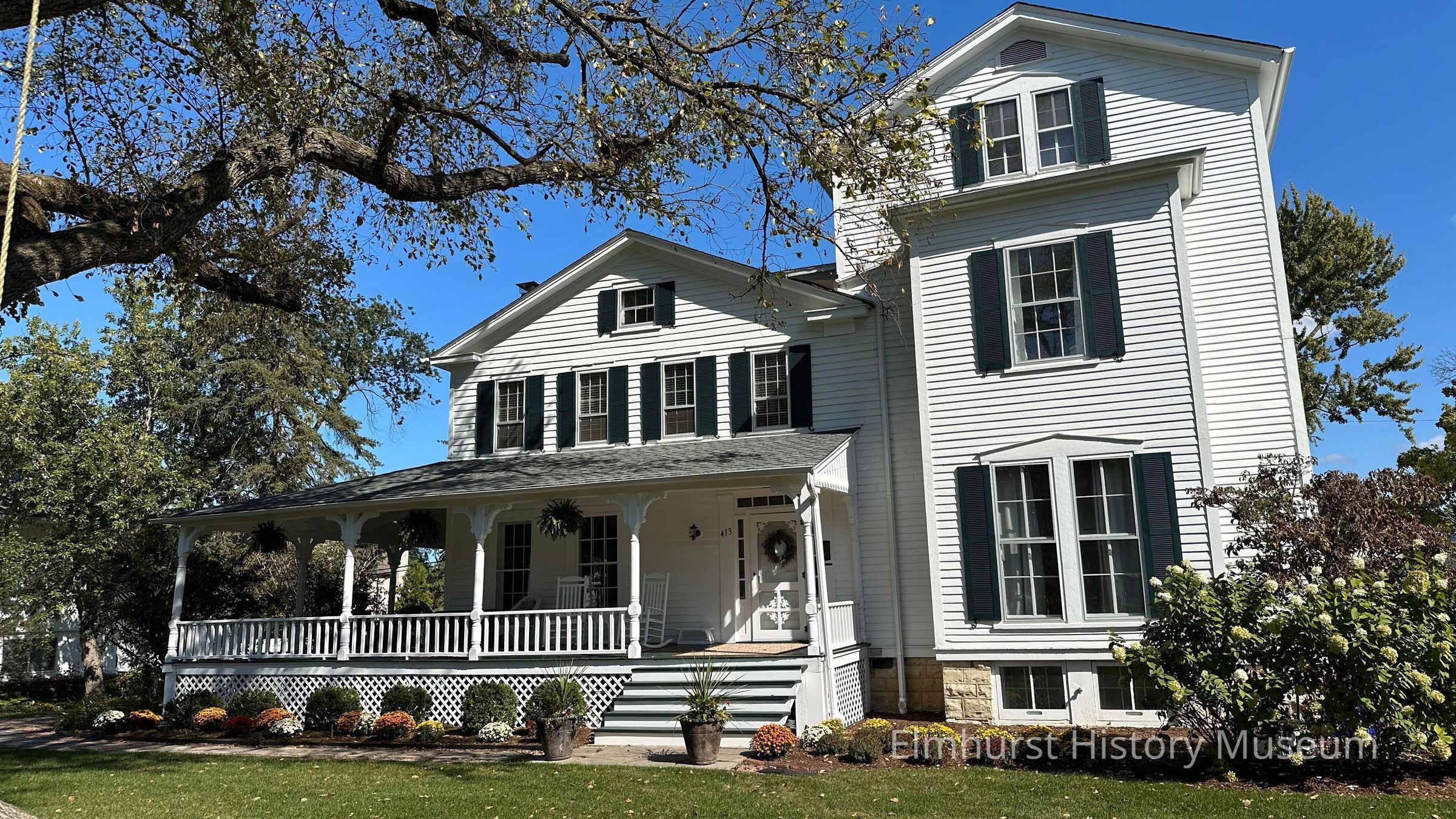 Exterior view of Hill Cottage house at 413 S. York Street. Hill Cottage is the oldest home and building in Elmhurst, dating to 1843.Photograph Details