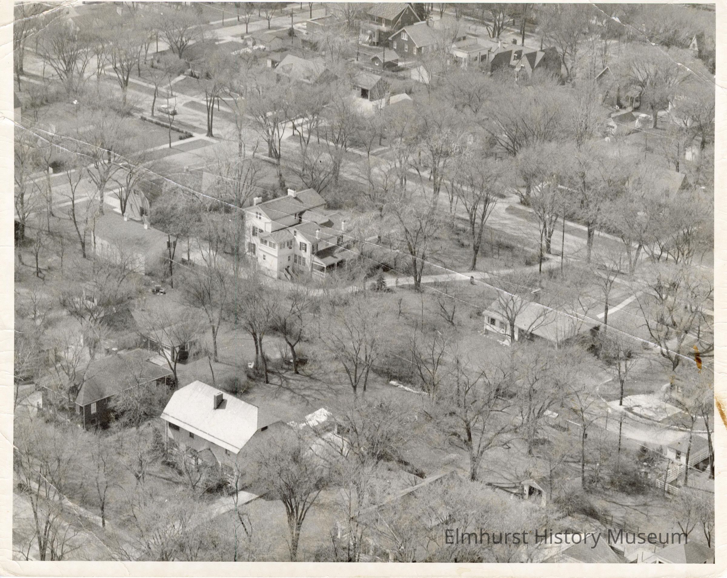 Aerial view of Hill Cottage house at 413 S. York Street, looking southwest.