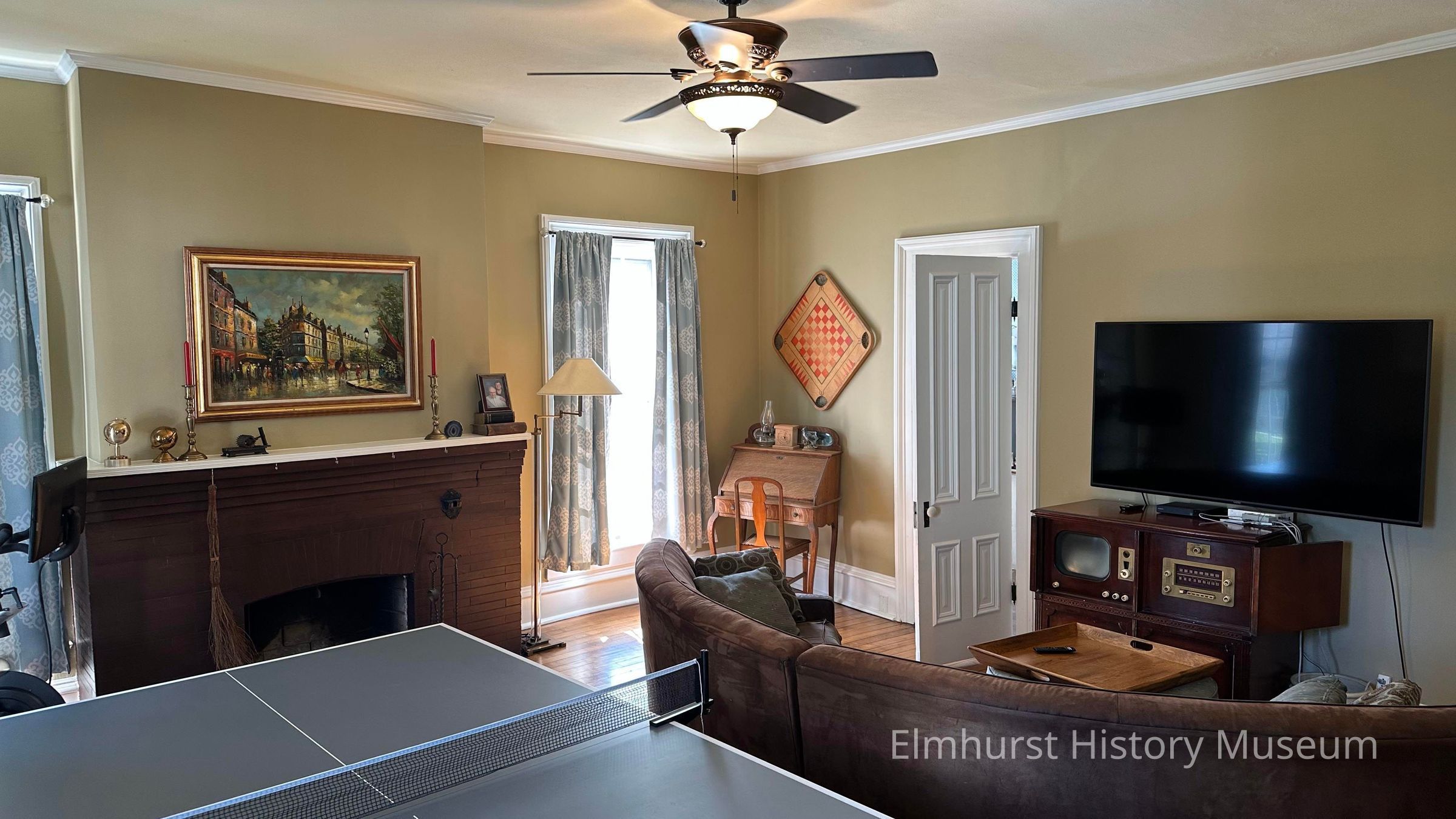 Interior view of Hill Cottage house at 413 S. York Street. Hill Cottage is the oldest home and building in Elmhurst, dating to 1843.Photograph Details