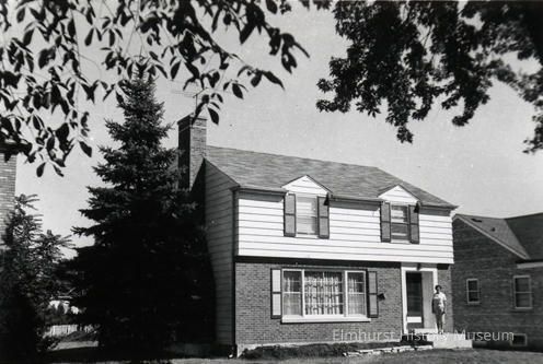 "427 Elm/Elmhurst,IL/by Walter and Marily/Teichen/Movedin 8-55/Picture taken 1956" is written on the back.