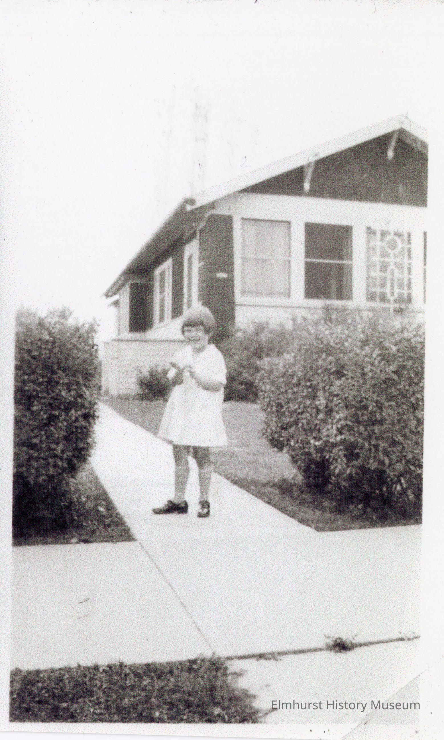 Mary Lou Hildebrand, age 7, stands outside her house at 570 S. Sunnyside Avenue, looking northwest from Vallette Street.Photograph Details