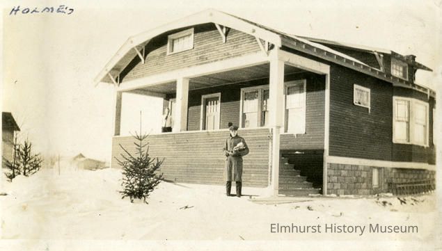 The Gustave and Clara Holmes home at 582 Fairview Avenue. Stanley Holmes is in front of the house and his sister, Alver Holmes, is on the porch.Photograph Details