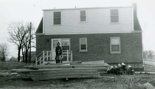 Joan and Carol Kenn standing on lumber for the garage at 732 S. York StreetPhotograph Details