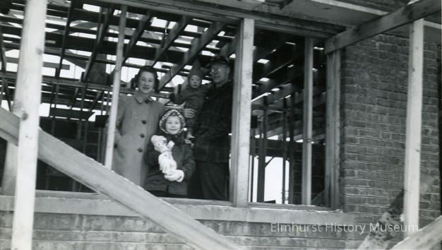 Joan, Carol, Lorraine and Wilbur Kenn standing in their house under construction at 732 S. York StreetPhotograph Details