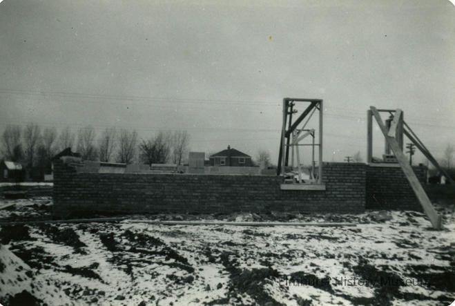 Written in cursive on the back: Our house being constructed. Taken around the first part of December 1949.