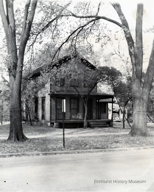 Elmhurst Public Library/Elmhurst, ILL 60126" is stamped on the back. "Richard Bourke/NW corner of Cottage Hill & Virginia/Photo: Earl L. Strand(1940)" is written on the back.