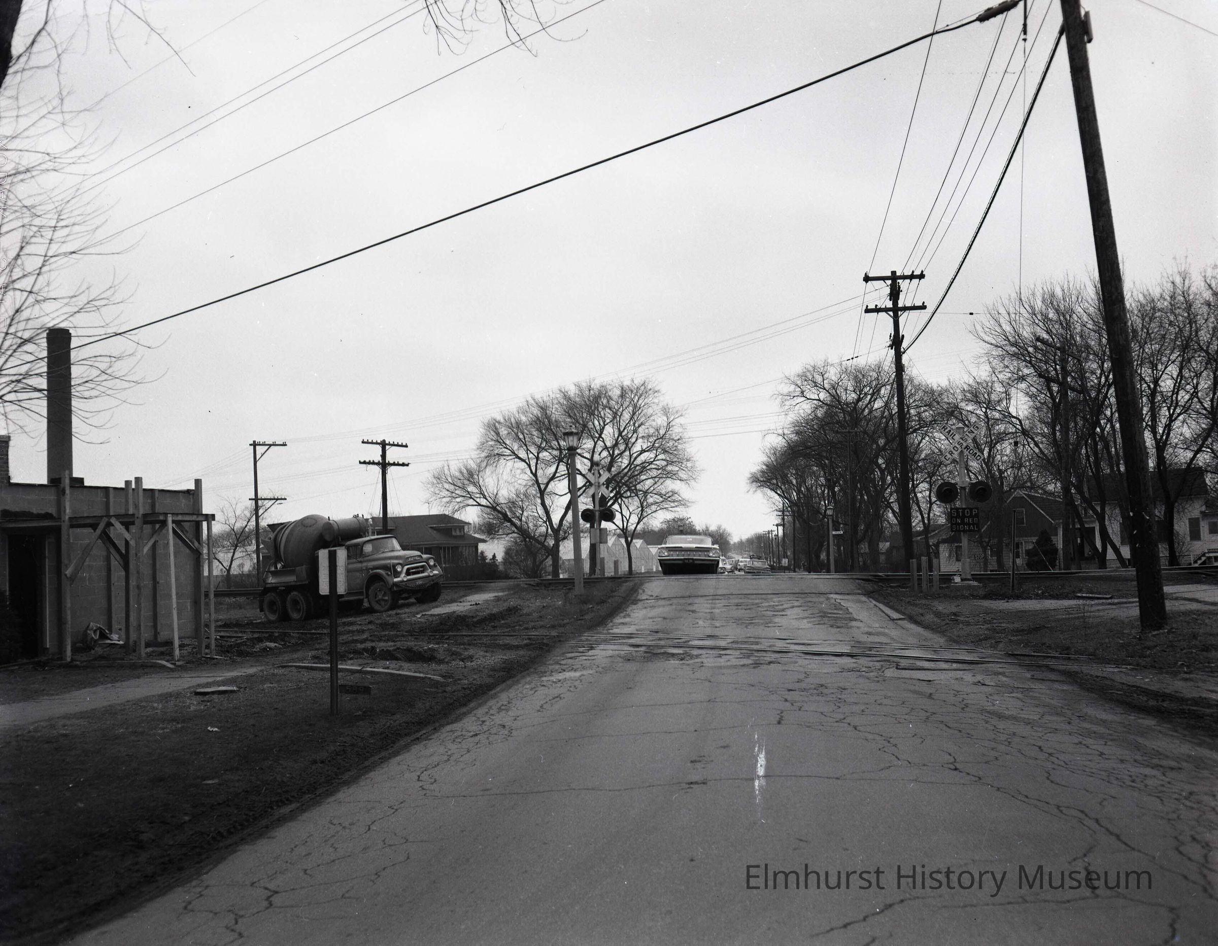 The IC railroad crossing at S. York Street, looking south from Crescent Avenue.Photograph Details