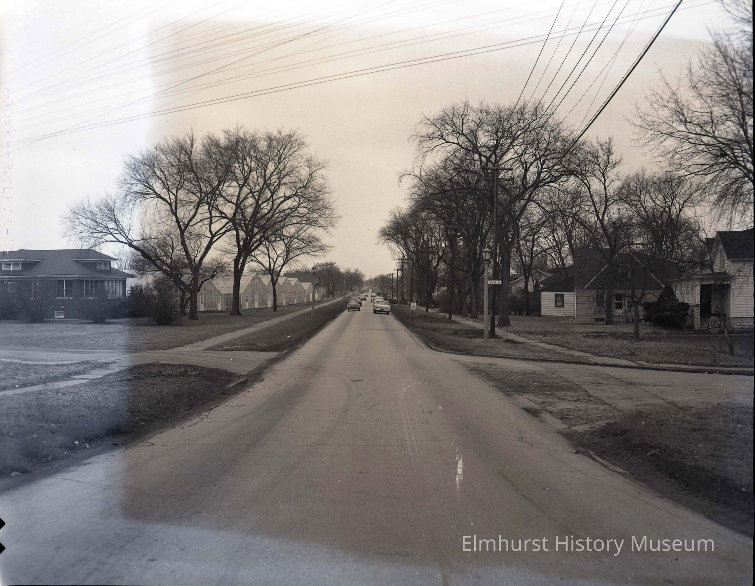 The IC railroad crossing at S. York Street, looking south. The Dramm Greenhouses are at left.Photograph Details