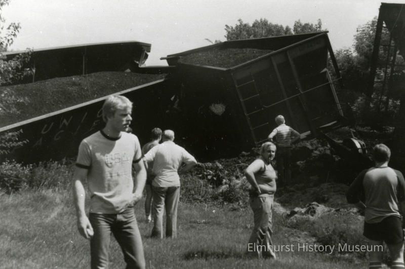 People observing wrecked train cars from the Illinois Central Railroad train wreck just east of York Street.Photograph Details