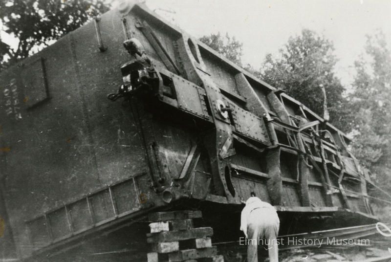Wrecked train car from the Illinois Central Railroad train wreck in Elmhurst.Photograph Details