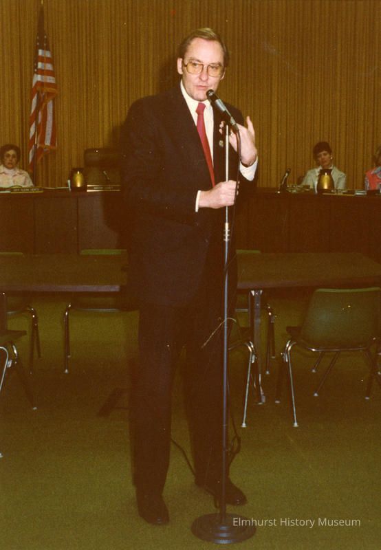Governor James Thompson at an Elmhurst City Council meeting.Photograph Details