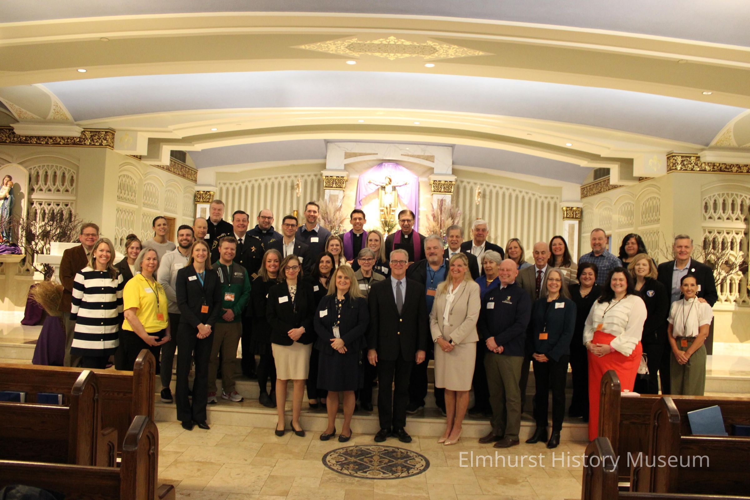 Mass held in the Immaculate Conception chapel for the IC Grade School 125th Anniversary community open house event. City VIPs in a group photo.Photograph Details