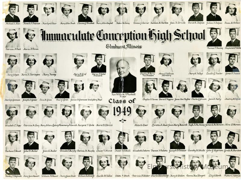 The words "Immaculate Conception High School Elmhurst, Illinois Class of 1949" are printed on the photo.