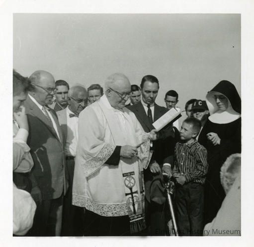 Msgr. Plunkett at the groundbreaking ceremony for the Immaculate Conception Parish Center, which included the chapel and gym.Photograph Details