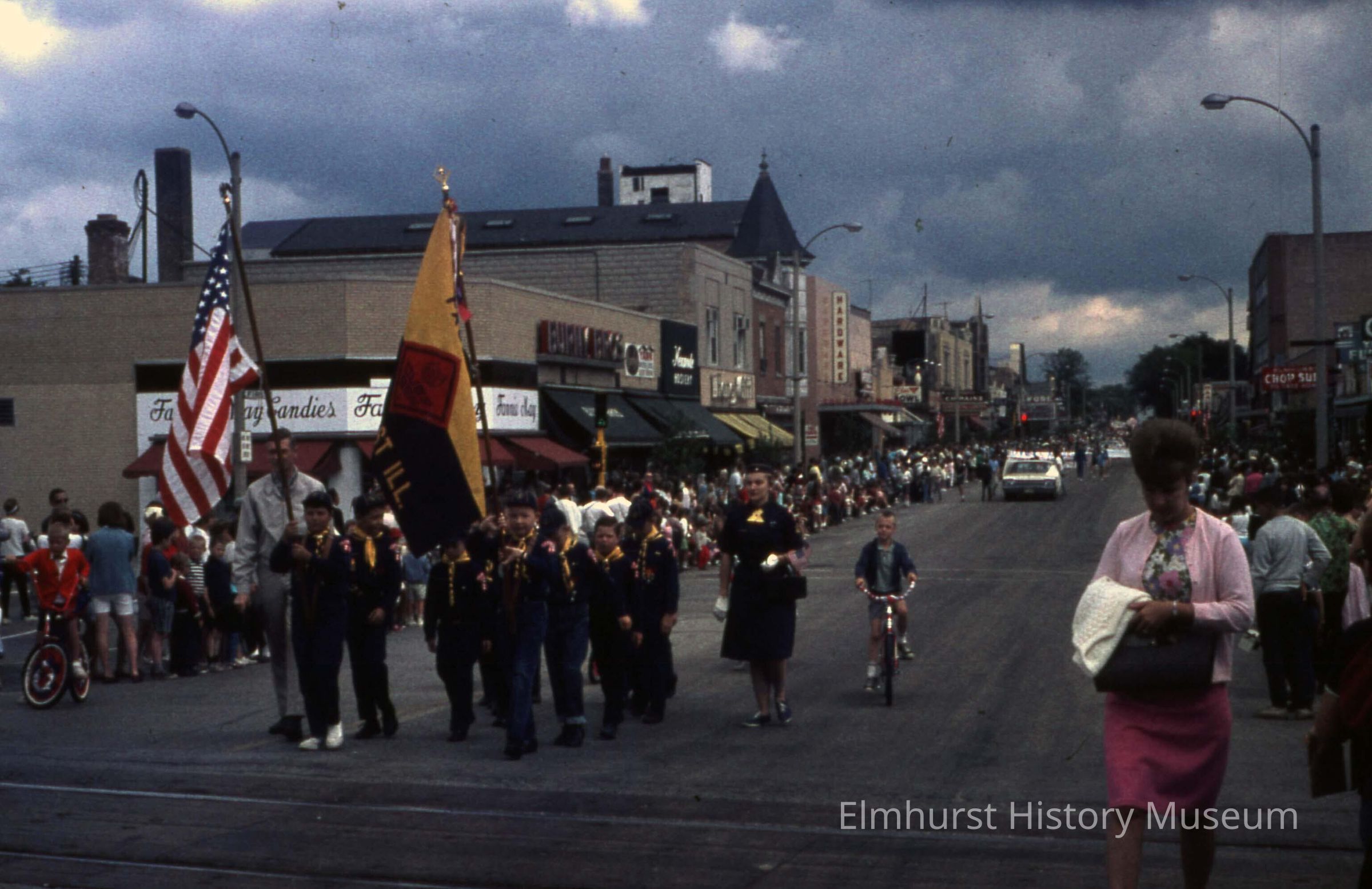 View of N. York Street at the Elmhurst 1967 Independence Day Parade, looking north from First Street.Photograph Details