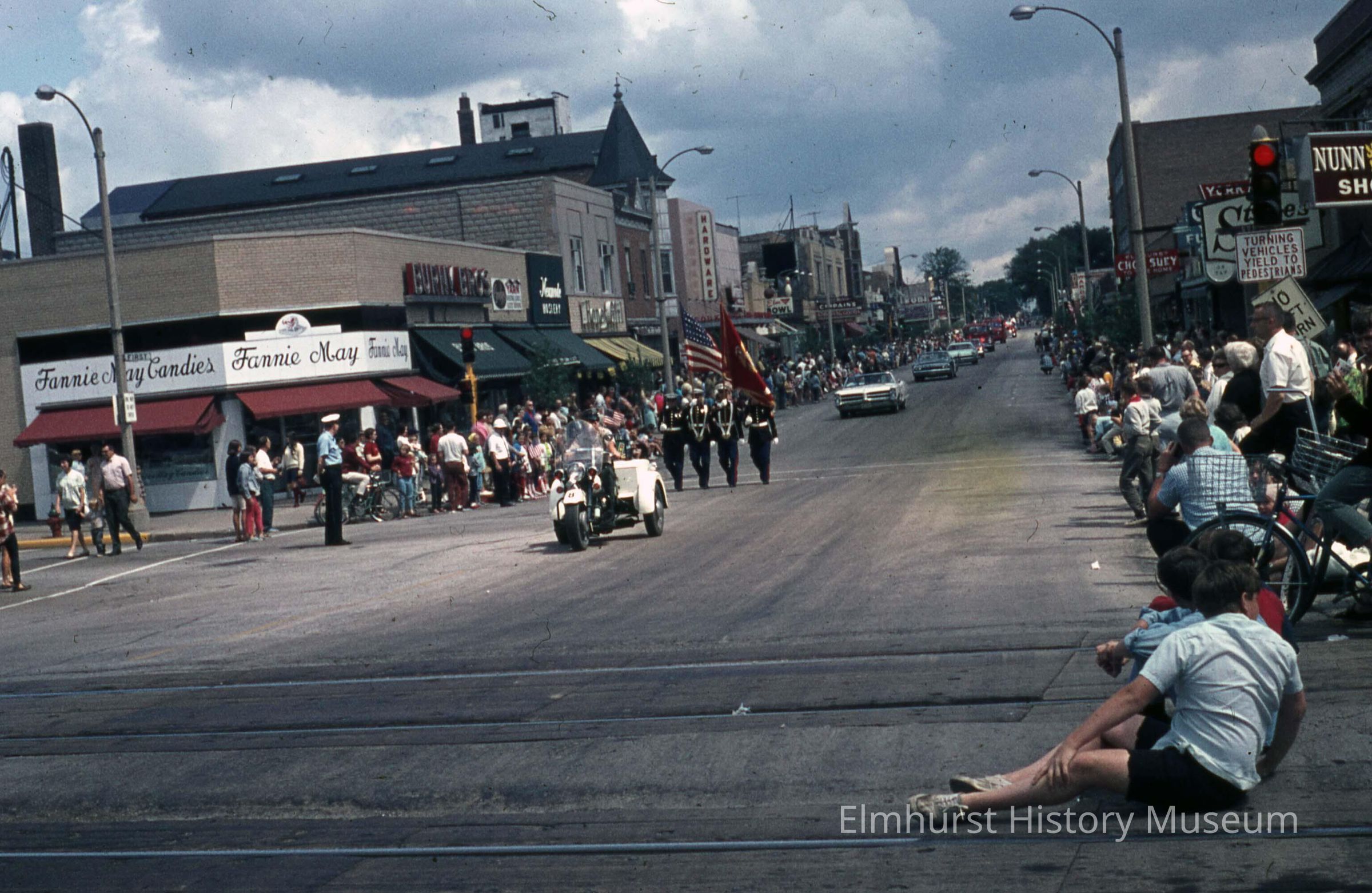View of N. York Street at the Elmhurst 1967 Independence Day Parade, looking north from First Street.Photograph Details