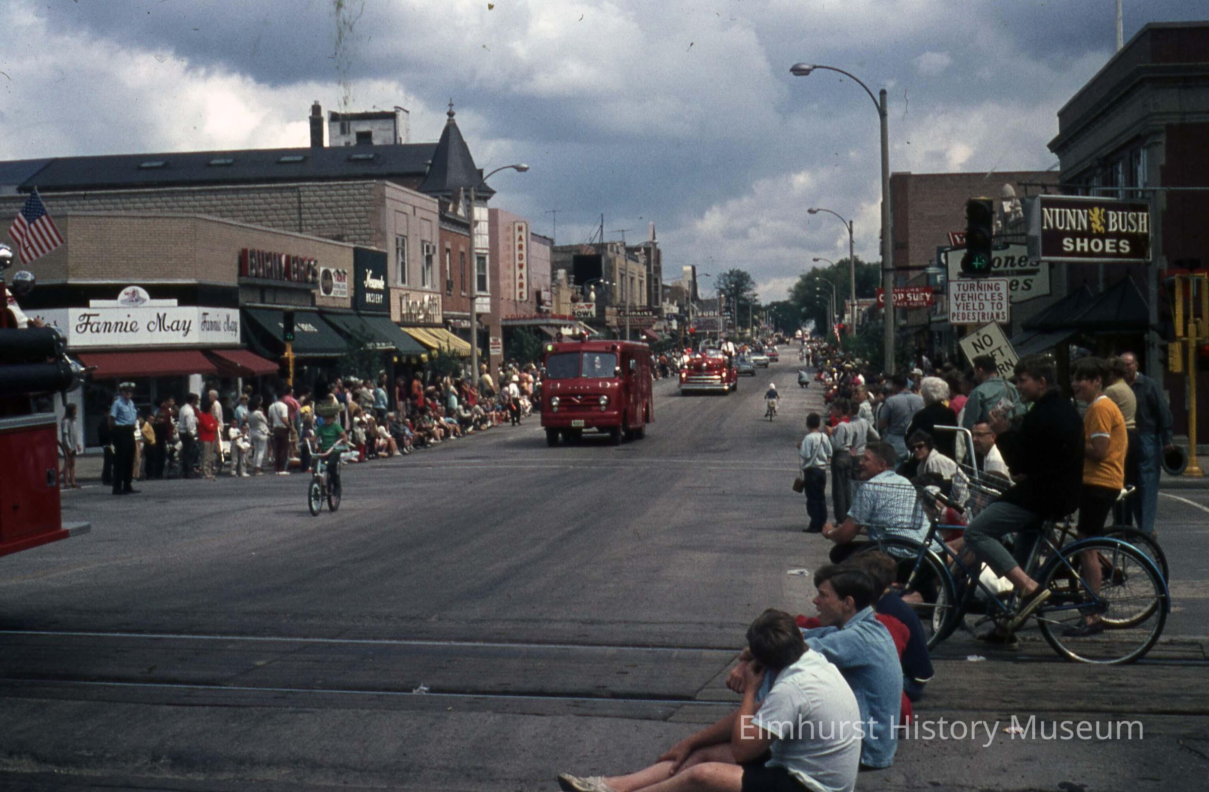 View of N. York Street at the Elmhurst 1967 Independence Day Parade, looking north from First Street.Photograph Details