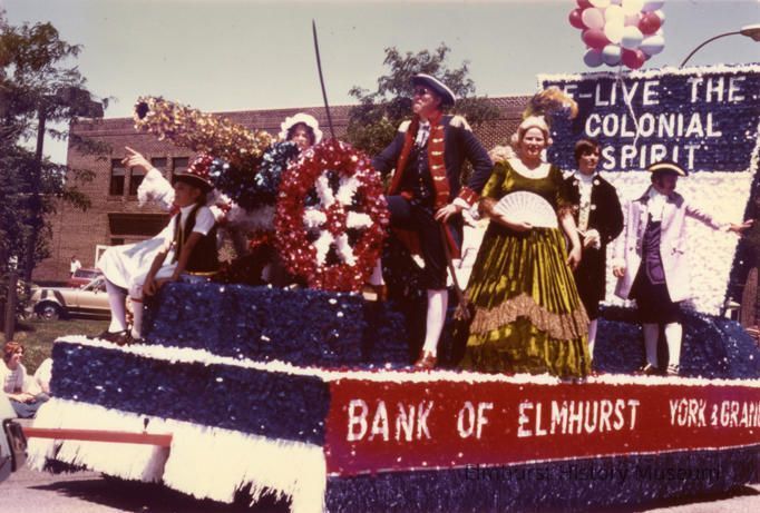 Elmhurst Bicentennial Independence Day parade, showing the Bank of Elmhurst float on S. York Street.Photograph Details