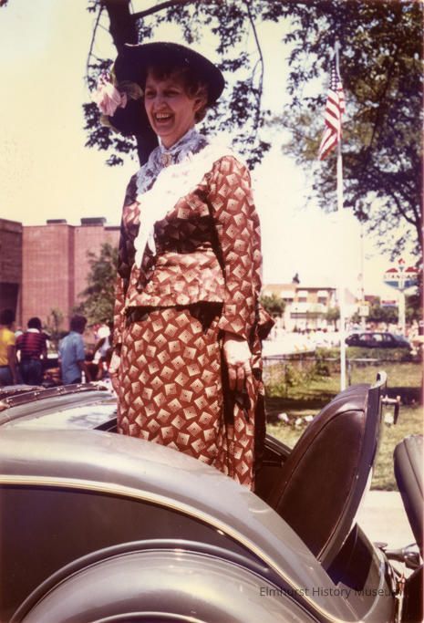 Elmhurst Historical Museum staff member Lillian Harlan in the Bicentennial Fourth of July Parade.Photograph Details