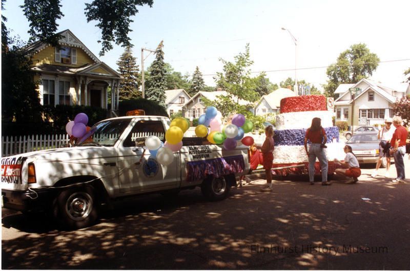 Elmhurst Historical Museum's float for the Independence Day parade, on Michigan Street in staging areaPhotograph Details