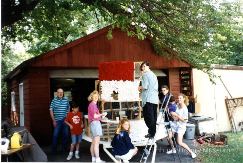 EHM volunteers creating the Elmhurst Historical Museum's float for the Independence Day parade at volunteer Les Tripp's house. JPhotograph Details