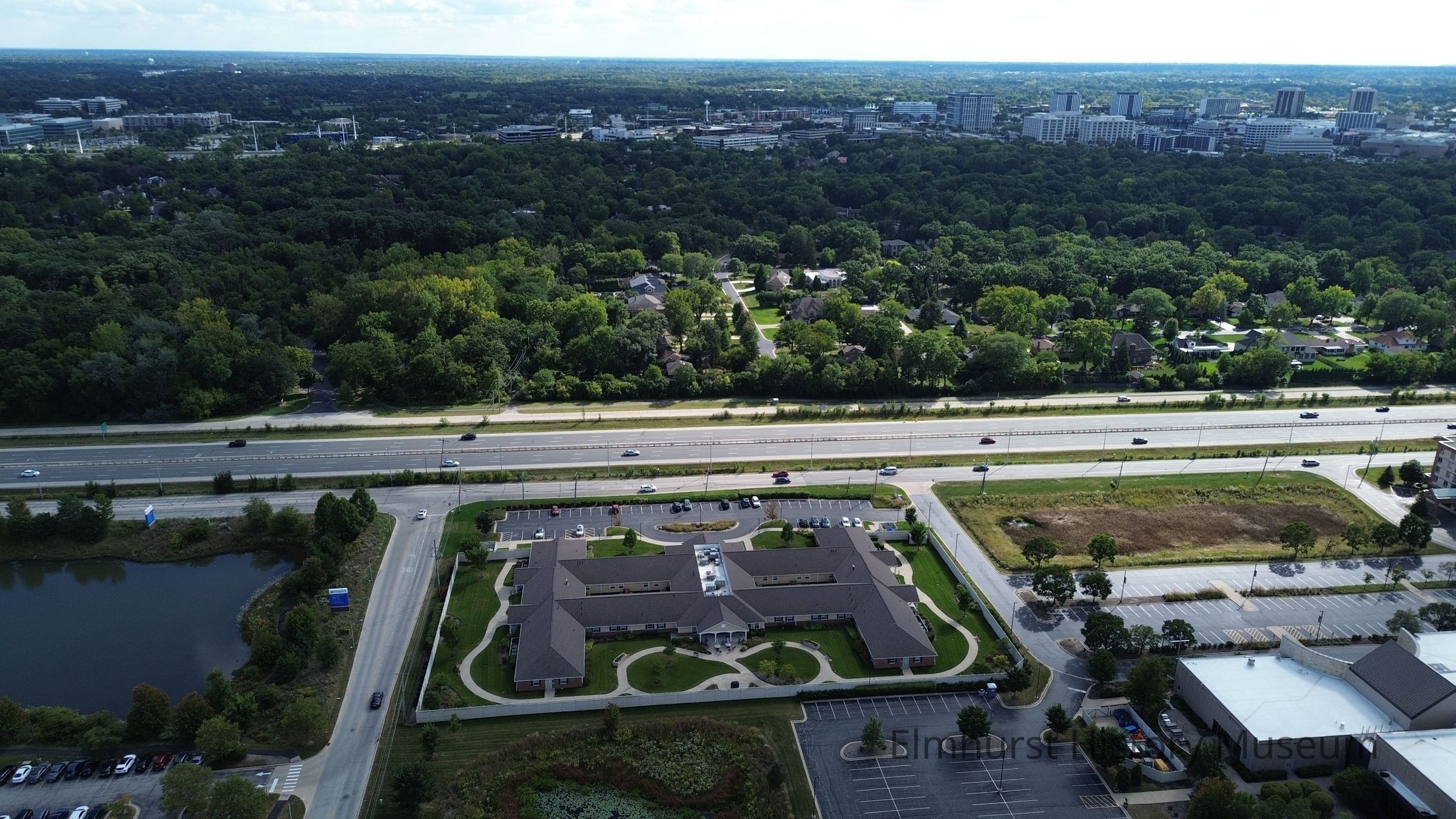 Aerial view of the Indigo Senior Living Center at 123 W. Brush Hill Road, looking south across Roosevelt Road.Photograph Details